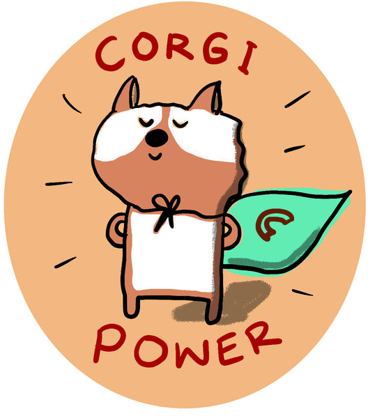 A Corgi's powers include the following: frisbee catching, skateboard riding, blueberry muffin eating, ball catching, friend making, bread eating, smiling, knowing when the freezer door is opening from any room in the house, running, soccer playing (especially goalie), and cuteness.